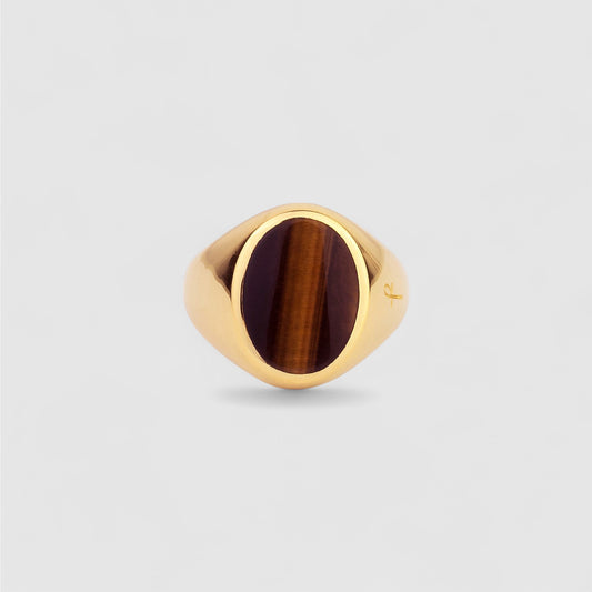 9CT GOLD TIGER EYE OVAL SIGNET RING