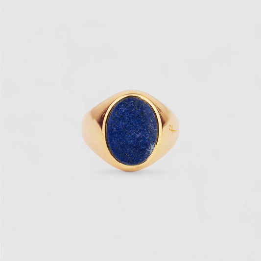 9CT GOLD LAPIS LAZULI OVAL SIGNET RING