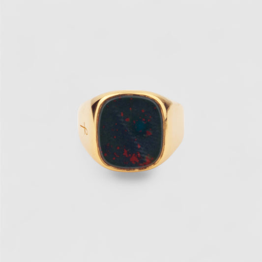9CT GOLD BLOODSTONE SQUARE SIGNET RING