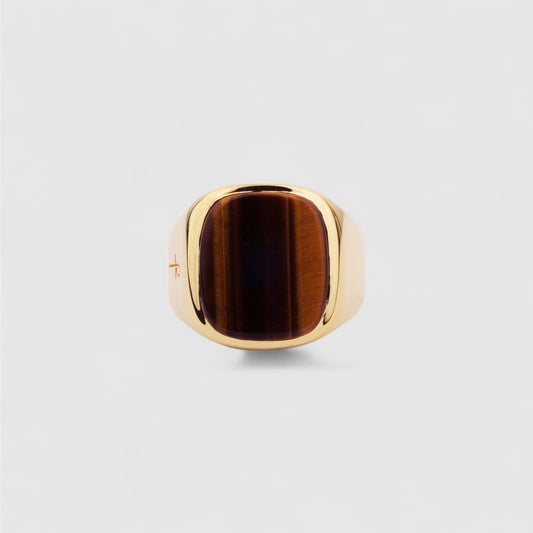 9CT GOLD TIGER EYE SQUARE SIGNET RING