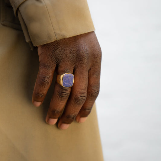 9CT GOLD LAPIS LAZULI SQUARE SIGNET RING