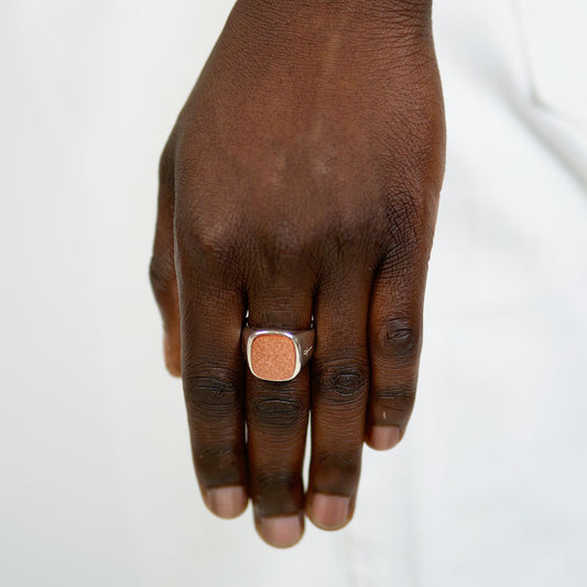 BLUE GOLDSTONE SIGNET GOLD SMALL