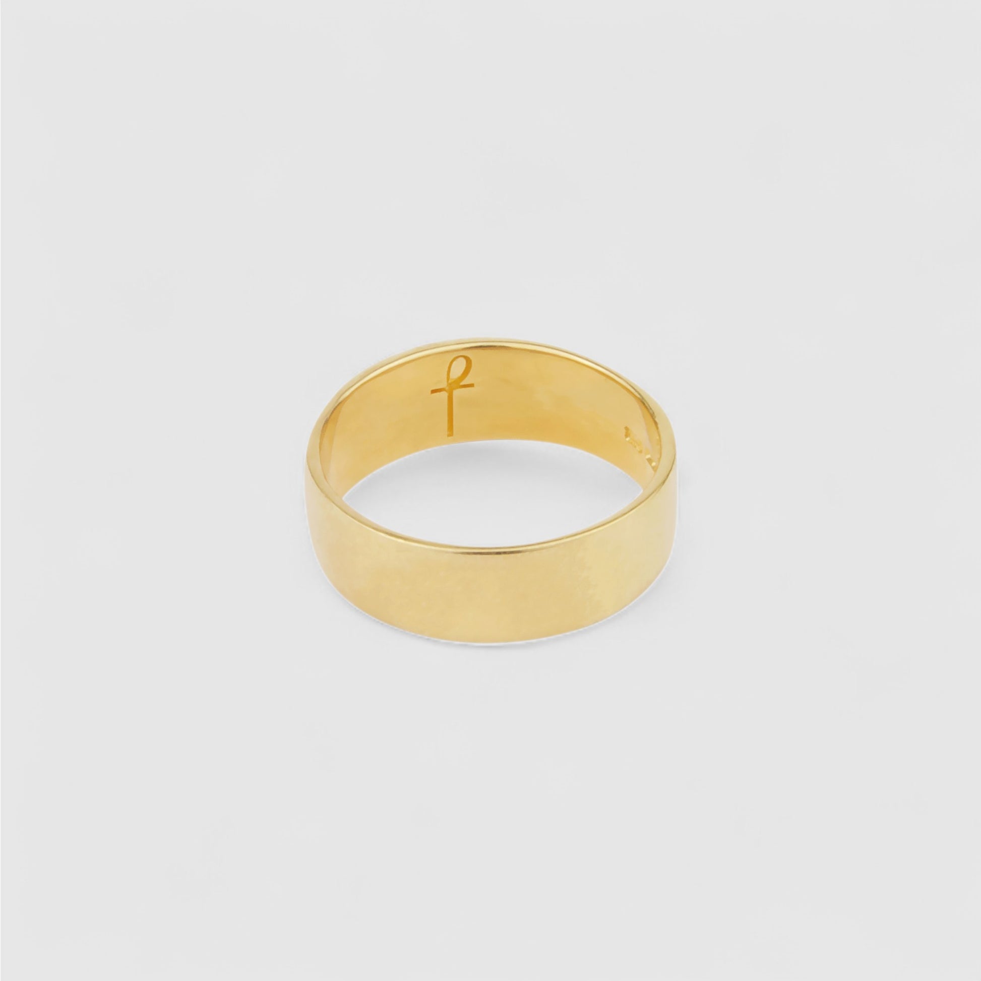 The Hawley Ring, named after the streets of London. A plain gold band. Engraved with the Phira London logo and hallmarked.