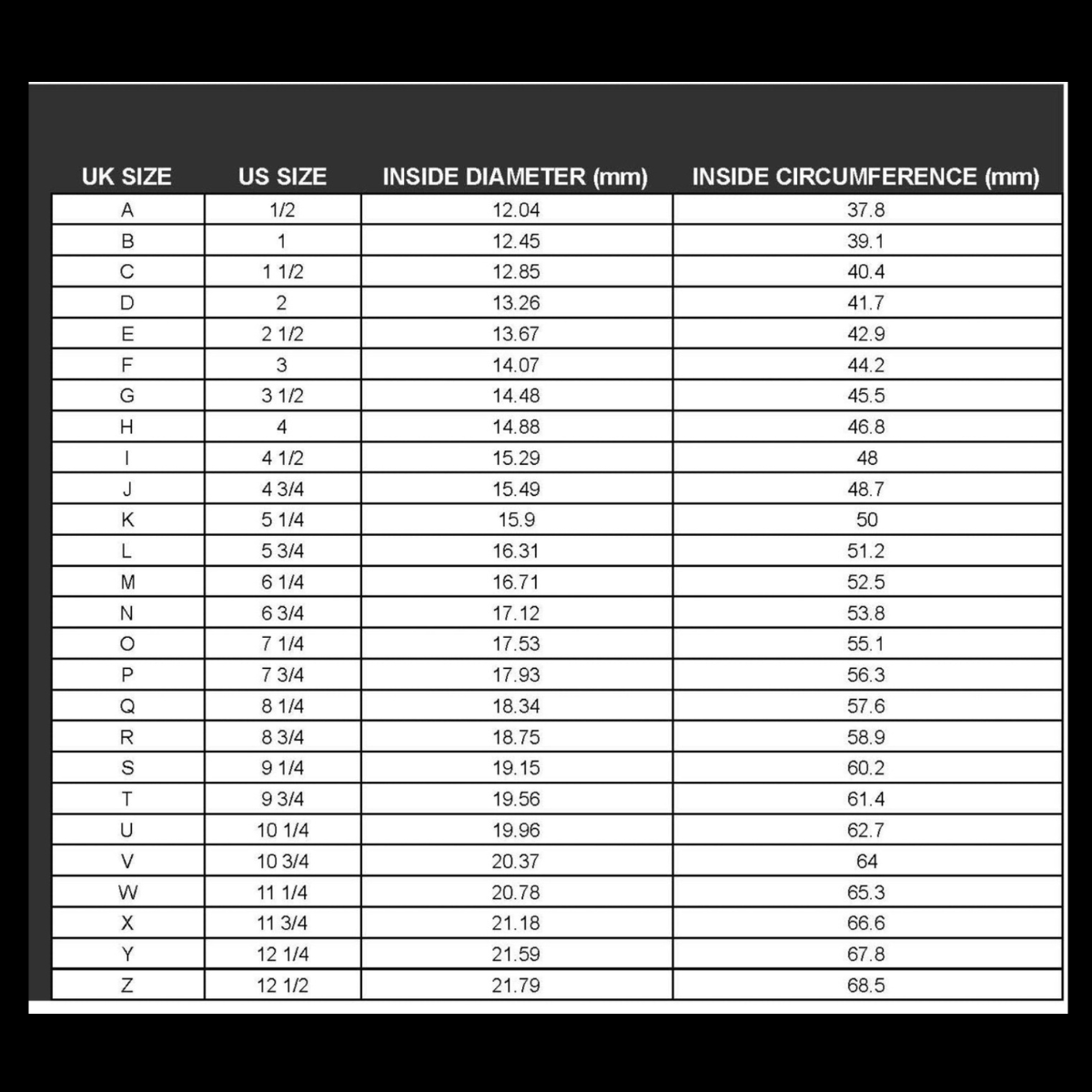 Marked with UK ring sizes A-Z. Just use this tool to measure your finger before choosing your size at checkout. The ring sizer will be shipped using 1st class delivery.
